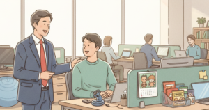 社員同士の笑顔あふれる会話。